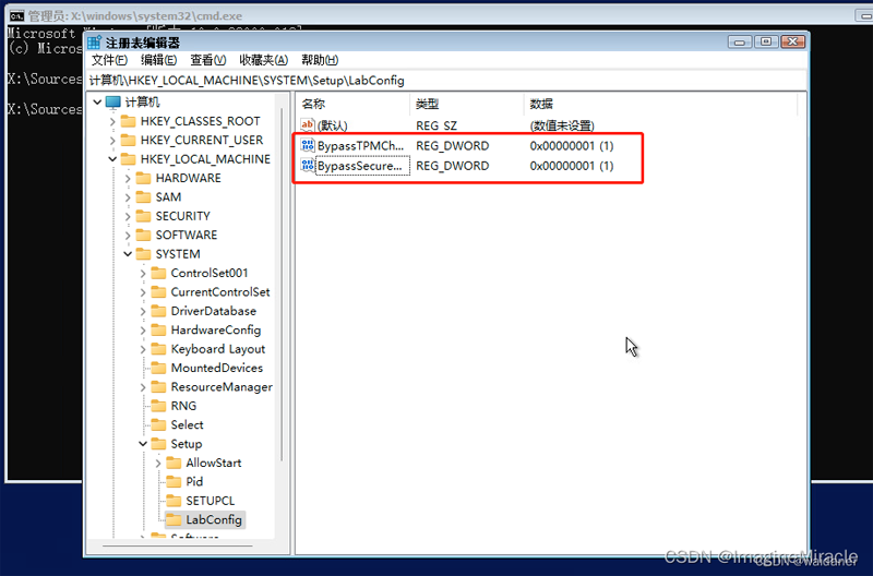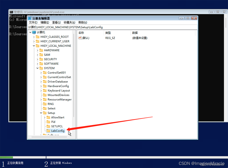 2、找到 计算机\HKEY_LOCAL_MACHINE\SYSTEM\Setup,在 Setup 下面右键 → 新建项,输入 labconfig 回车。